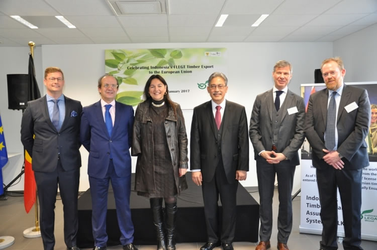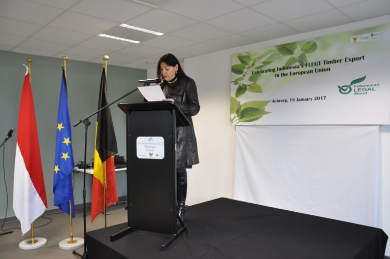 To celebrate this important milestone, the Embassy of Indonesia in Brussels, in collaboration with Altripan N.V and Fepco N.V, two Belgium's leading timber importers, held an event titled, "Celebrating Indonesia's FLEGT Timber Export to the European Union" at Altripan N.V headquarter in Antwerp, Wednesday, 18 January 2017. Attended by Federal Minister of Environment, Energy, and Sustainable Development Kingdom Belgium Marie- Christine Marghem and Director General for Environment European Commission, Daniel Calleja Crespo, the event was also participated by businesses and consumers from Belgium, the Netherlands, and Germany, as well as representatives of environment NGOs, timber associations, local and competent authorities, and officials from EU institutions.